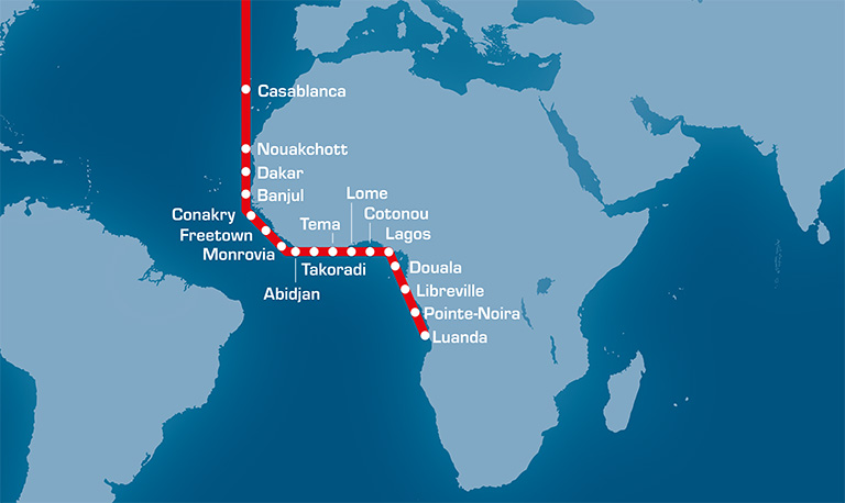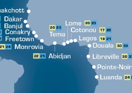 Ship vehicles, containers and more – directly to 18 ports in West Africa.
