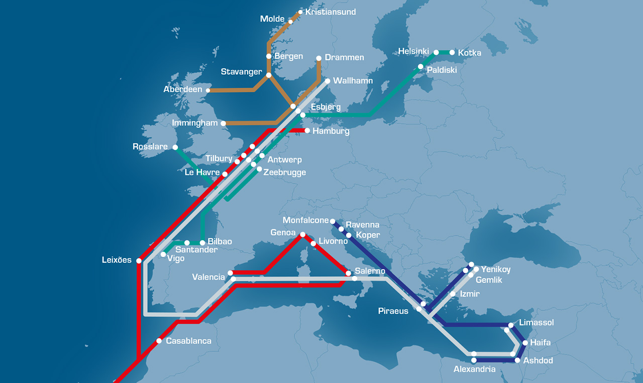 Click on the images below to download PDF files with maps, covering all our services in Europe and the Mediterranean.